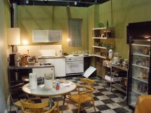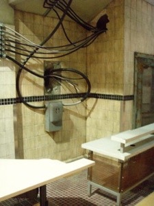 The Subway station, the tunnel and the train were all designed and built in a fairly tiny commercial space. I endeavored to give it a mini Grand Central feel. We used real tiles and classic details that were tarnished by time, misuse and neglect.