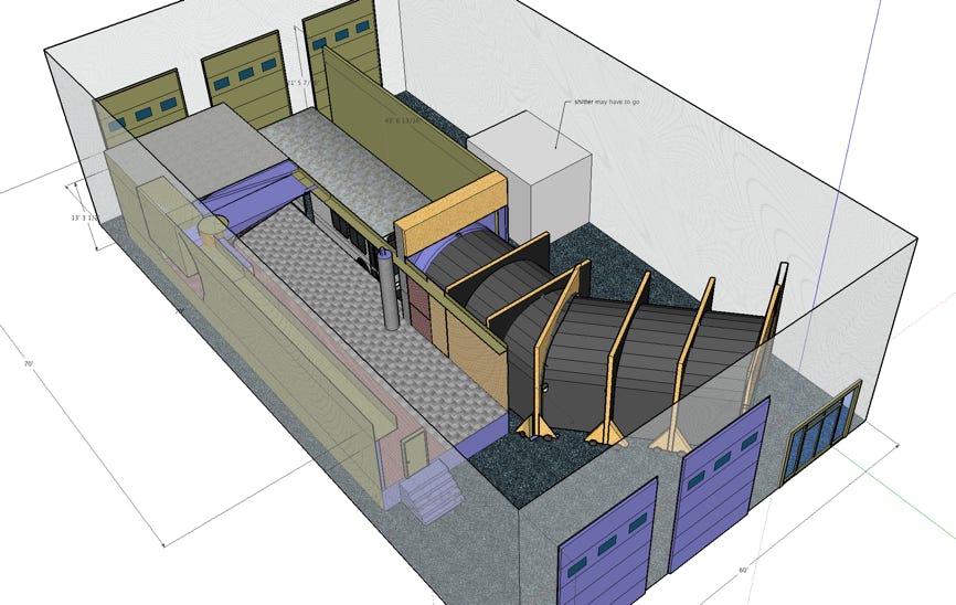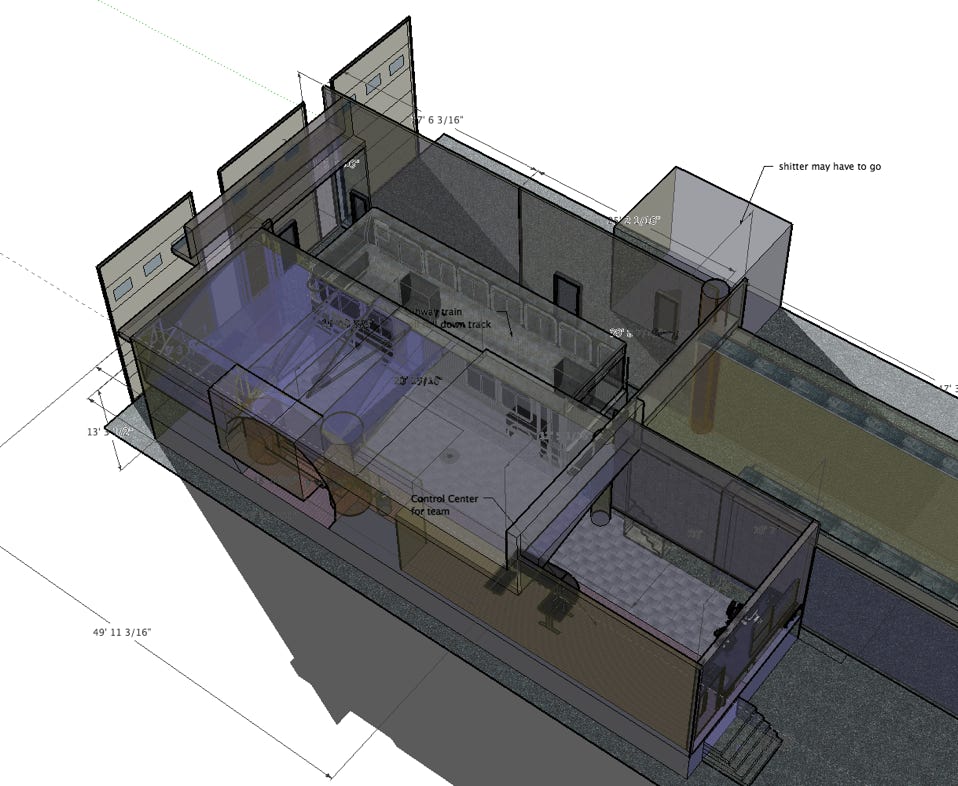 I designed a tunnel with emergency doors and a refurbished subway car that was used as a medical lab.