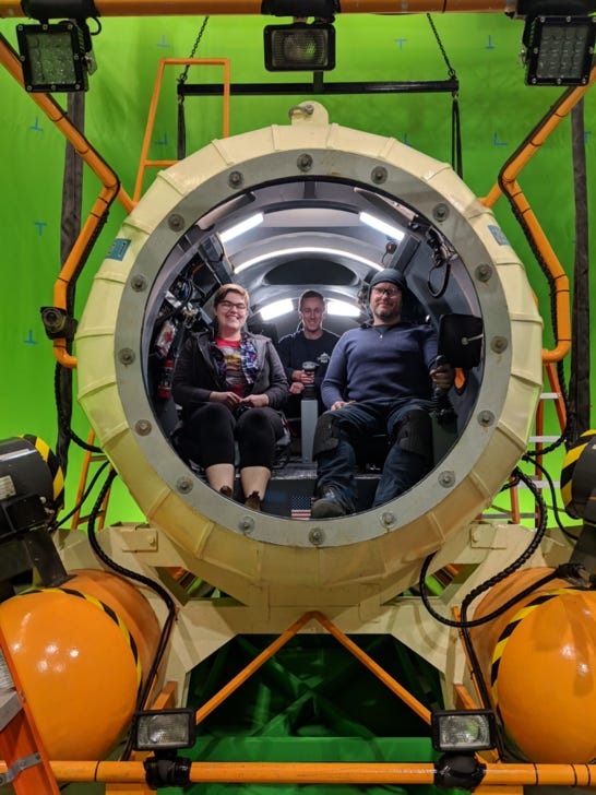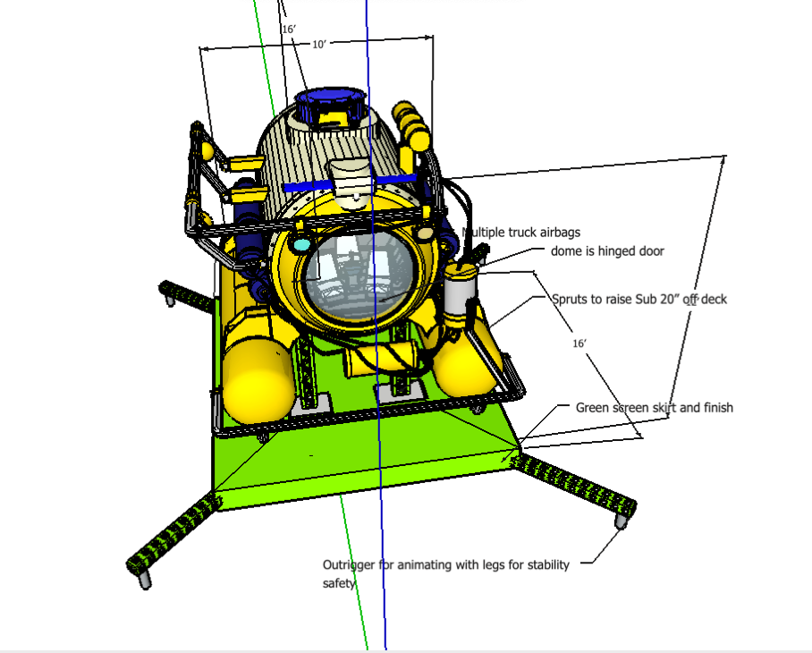 For the Sub green screen work on stage, we opted for a simple manual gimbal system on air bags . It worked well and the underwater sequence in Season 2 episode 12 was very wonderful thanks to Terry Hutcheson and Dan Dixon our VFX magicians …