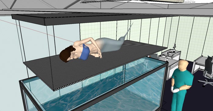 End of second season, also saw the need for our human cast to descend down to the mermaid’s territory. We were tasked to build a believable sub in 1 month .. This would have been impossible without the talents of Baron Shaver and his Construction crew, who built the sub out of sheet aluminum in short time .. With the advice from Nuytco Research ltd (a local international underwater specialists), I designed a classic 3 man Sub to do the trick. It was made to be gimbaled in front of green screen to simulate going underwater. The interior was extremely well detailed by our amazing set dec team under Josh Plaw ….The sides clamshelled open for access, as well as to simplify shooting interiors.