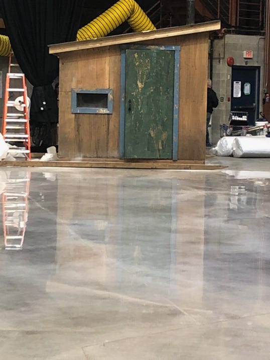 Baron Construction and teams made use of rolled polymer sheets , cut irregularly and layered to show ice breakup and expansion … It looked great, and shot well although the reflections of the above lighting needed some additional VFX magic..